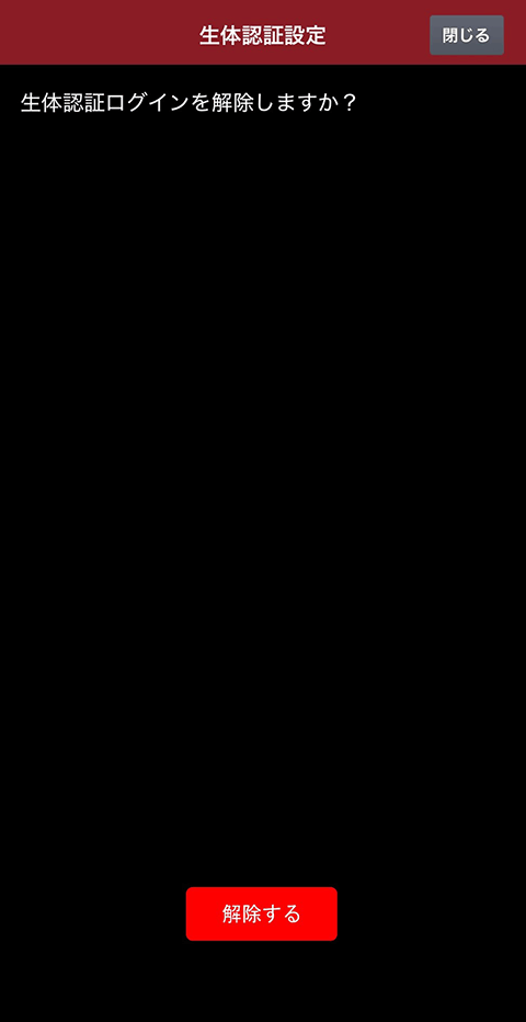 - 「解除する」をタップすると、生体認証機能が解除されます。